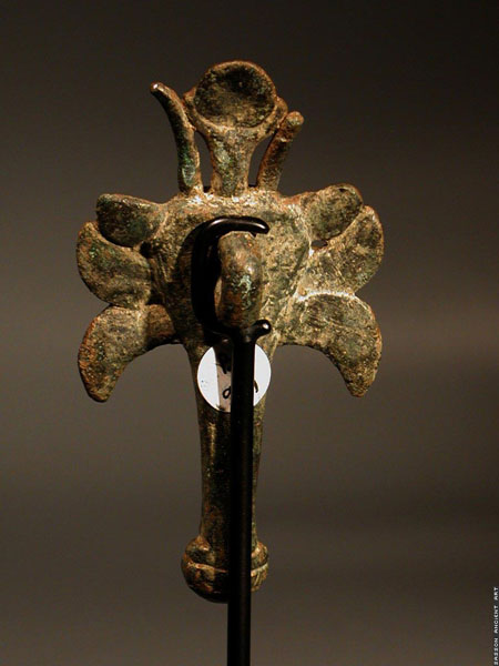 This unusual figure of Pazuzu combines his head with the bull’s head with solar disk, which suggests a Syrian or Phoenician origin.