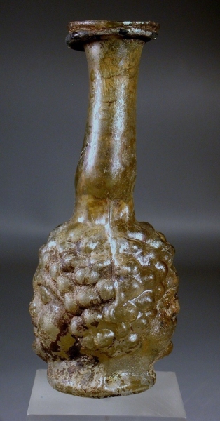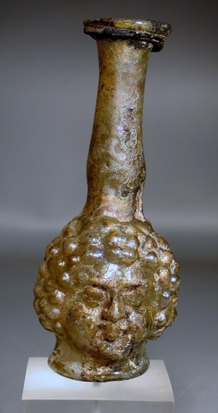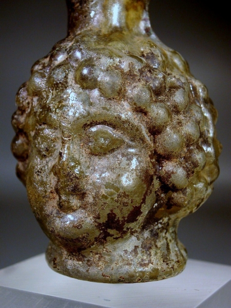 Roman light yellow glass Janus head tall flask. Click on any image to enlarge it.