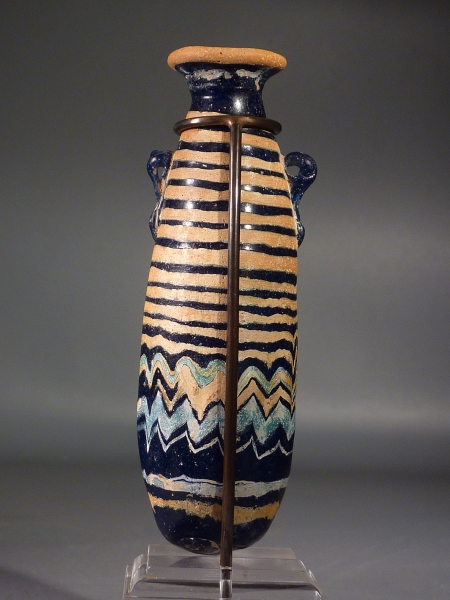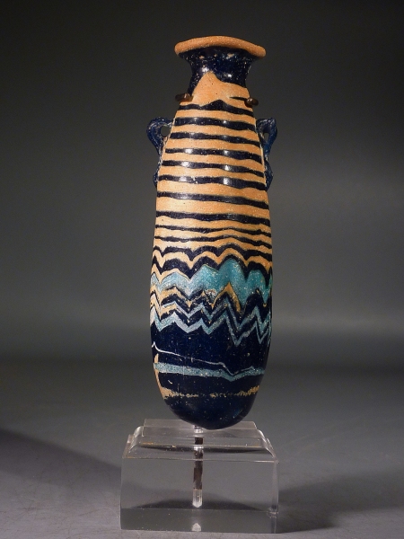 Eastern Mediterranean core-formed blue glass Alabastron.Eastern Mediterranean core-formed blue glass Alabastron.Eastern Mediterranean core-formed blue glass Alabastron.Eastern Mediterranean core-formed blue glass Alabastron.