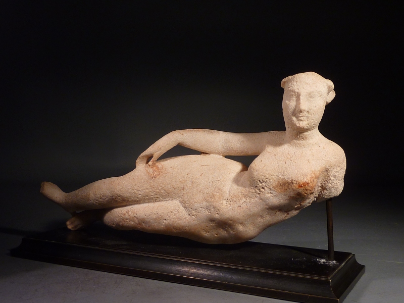 Parthian alabaster reclining figurine of a woman, possibly Aphrodite.
