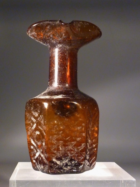 Early Byzantine molded honey-amber glass hexagonal flask.