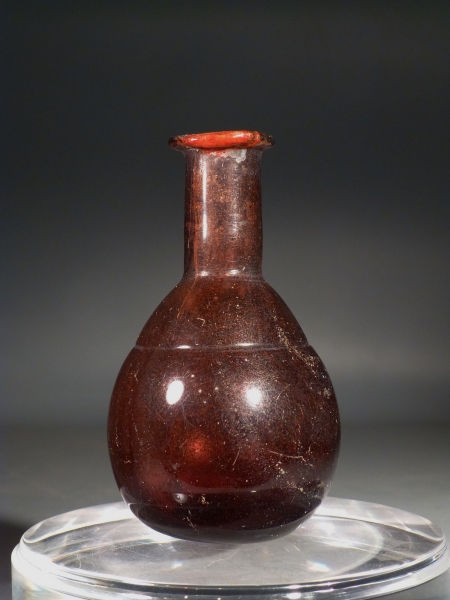 Early Roman amethyst purple glass unguentarium (cosmetic flask).