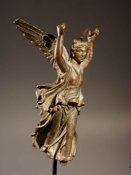 Bronze statues of Nike and Victory are rare in the Greek and Roman art, and are more common in marble and painted vases.