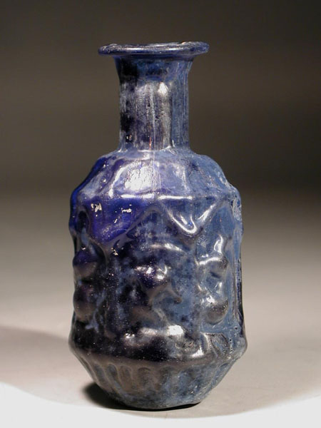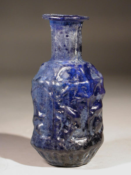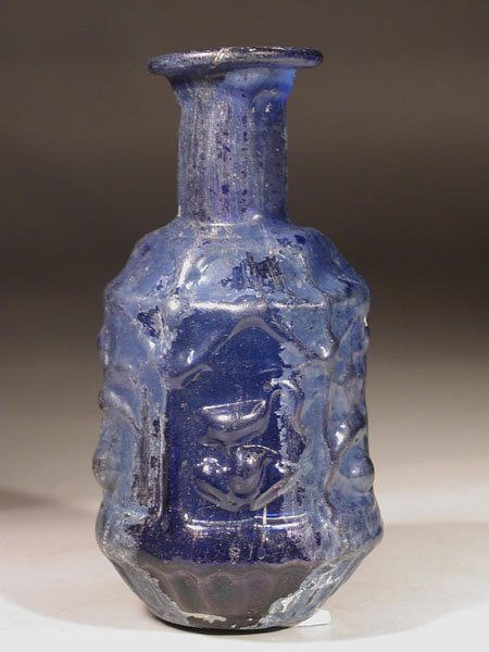 Sidonian cobalt blue glass hexagonal ???Birds?? flask