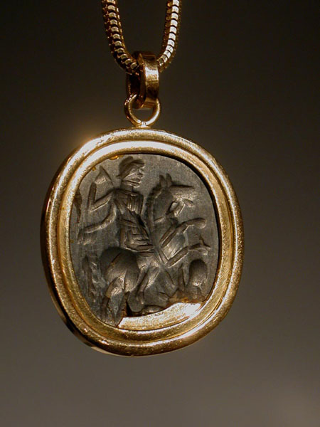 Late Roman Hematite magic gem of Solomon in modern 18K gold pendant